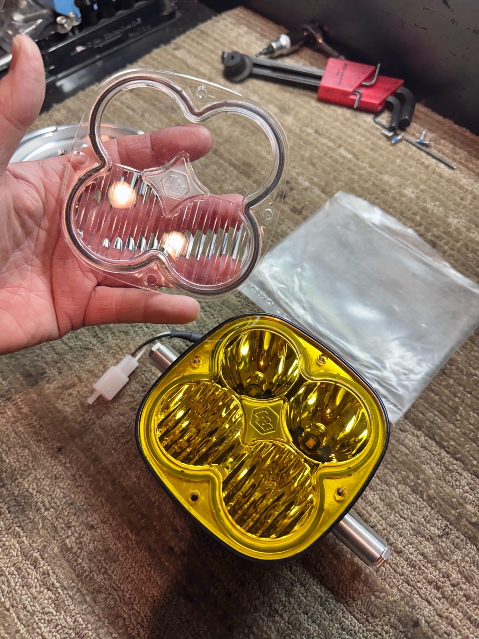 CHIMERA Baja XL ヘッドライトコンバージョンキット、ズーマー用B2VヘッドライトコンバージョンキットほかBajaデザイン製XLヘッドライトに使用可能なオプションレンズです。純正のクリアレンズと入れ替えてアンバーカラーとする事が可能です。